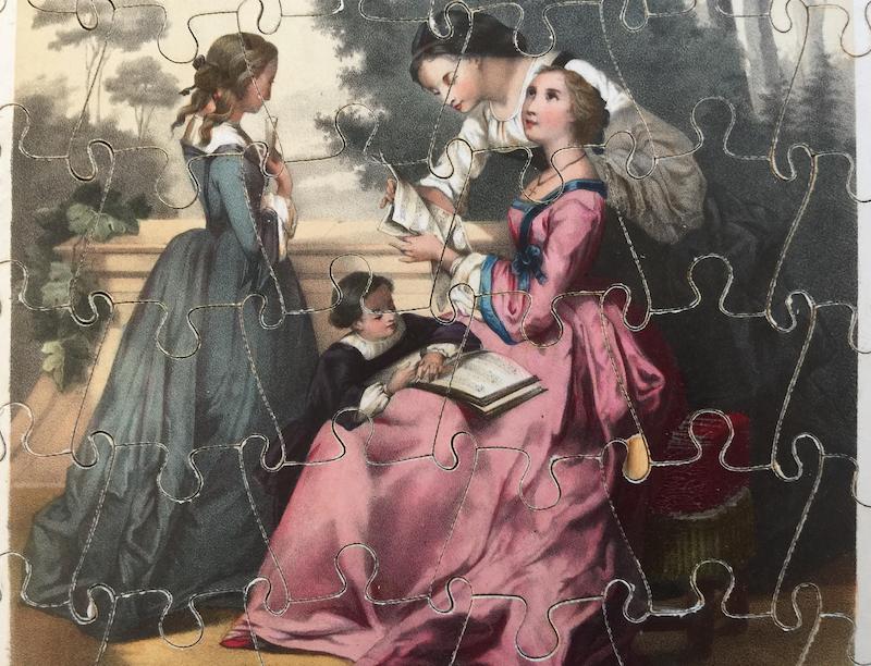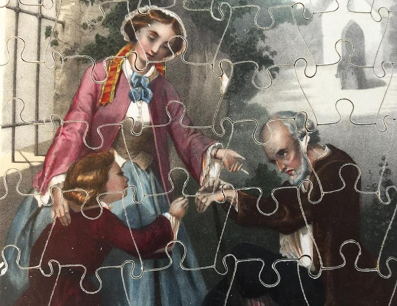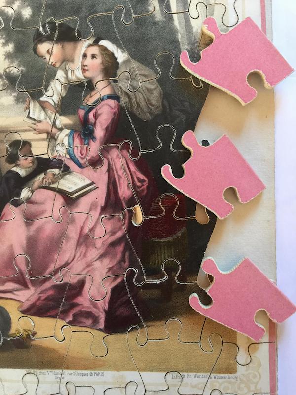 - 3 estampes collées sur bois et découpées en 60 pièces