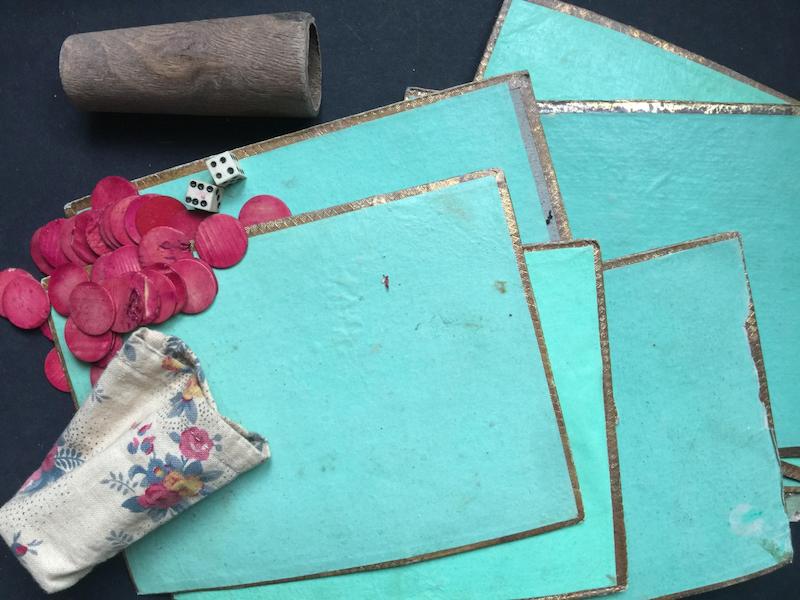 - godet, 2 dés et jetons de mise en os dans sac toile