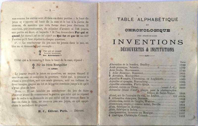 - notice (règles et table des inventions) 15 x 12 cm, 18 pages