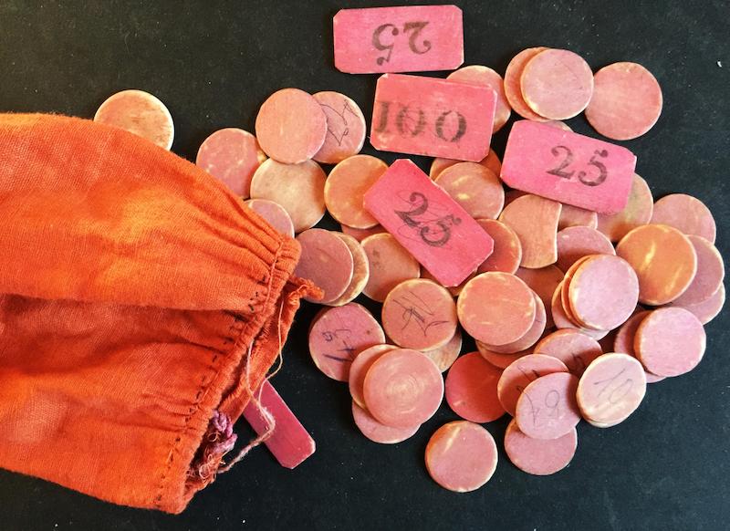 - 90 pions hémisphériques bois et papier collé