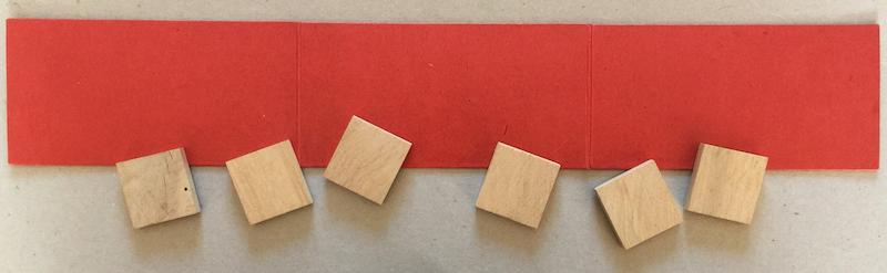 - 6 pions bois et papier collé 3 x 3 x 0,5 cm