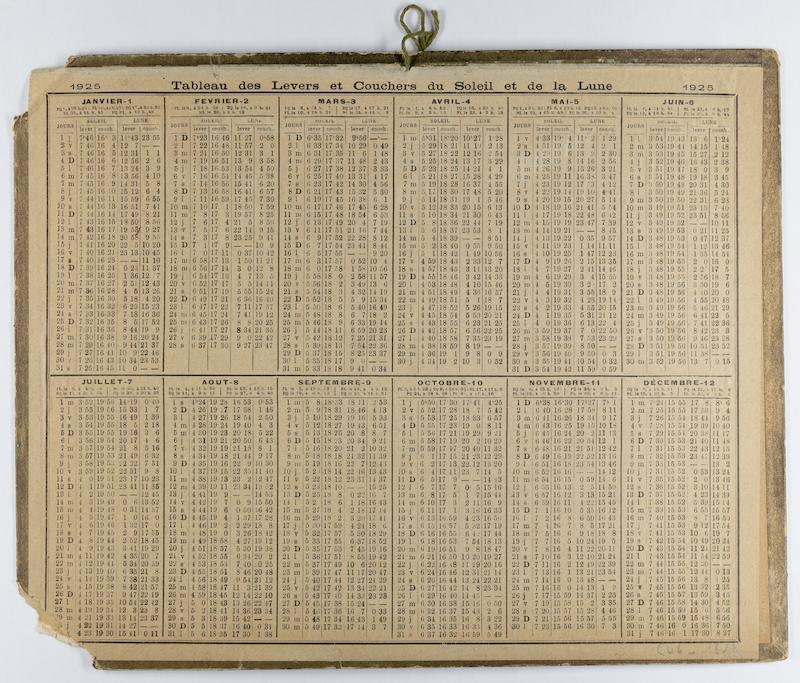 - Encarts publicitaires pour la ceinture-maillot du Dr Clarans, par la succursale Claverie rue du Faubourg Saint-Martin à Paris, encollés sur un calendrier