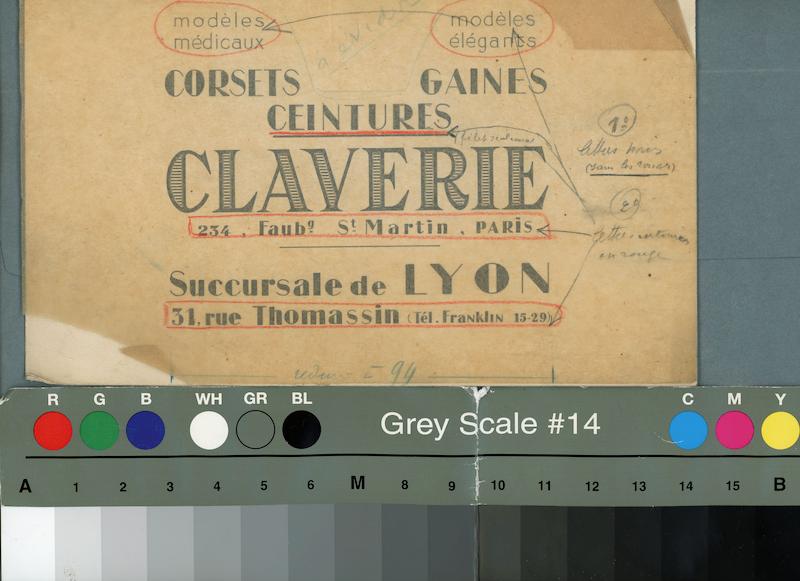 - Succursale Claverie de Lyon : essai typographique, dessin et calque annoté