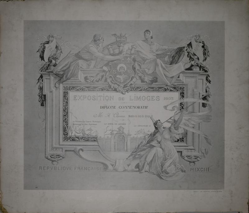 - Diplôme commémoratif de membre du jury du groupe III de l'Exposition de Limoges en 1903