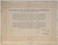 Diplôme commémoratif pour la participation des Établissements Claverie à l'exposition internationale Panama-Pacific à San Francisco (1915)