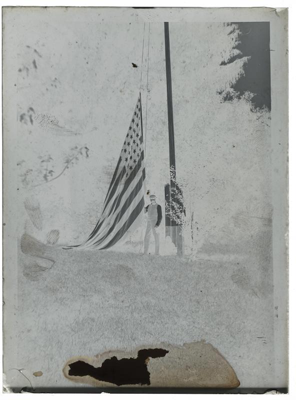 - Homme pavoisant un mât d'un drapeau américain
