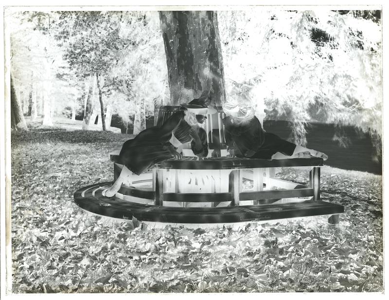 - Deux fillettes sur un banc de jardin (Jeanne et Louise Tissot ?) dans le parc de Buillon