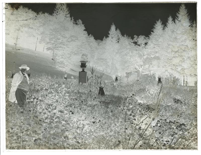 James Tissot et une fillette dans les fleurs, parc de Buillon