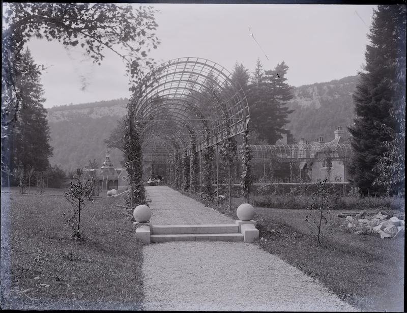 - Tissot et une fillette sous la pergola, la ferme et la volière de Buillon en arrière-plan
