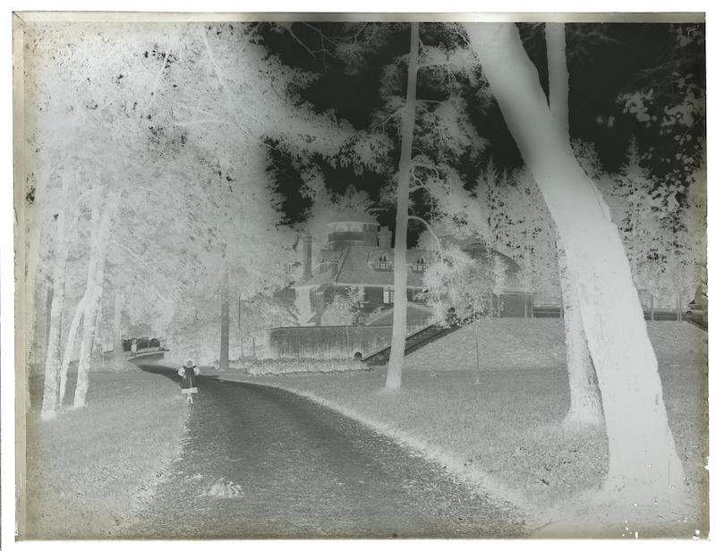 Fillette sur une allée devant le logis abbatial de Buillon