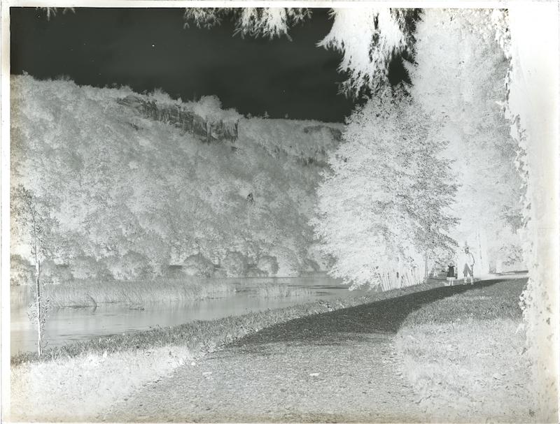 - Parc de Buillon, Tissot et une fillette sur un chemin le long de la Loue