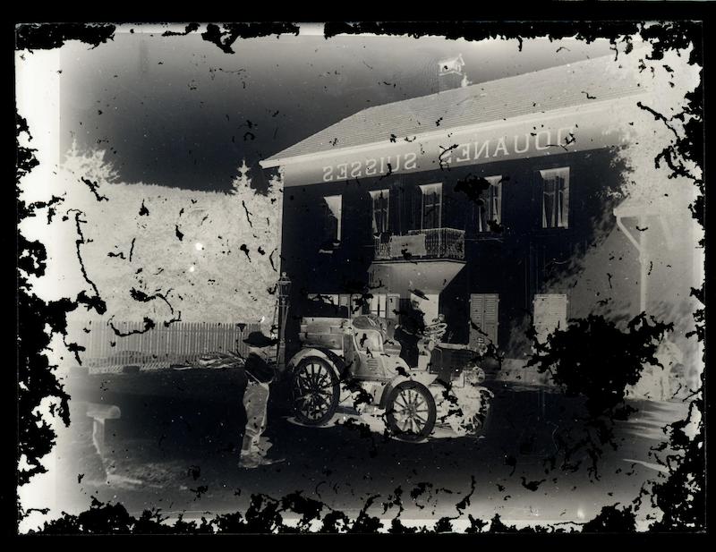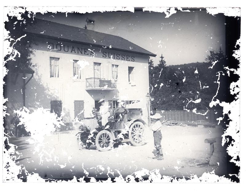 - Automobile devant un bâtiment des douanes suisses