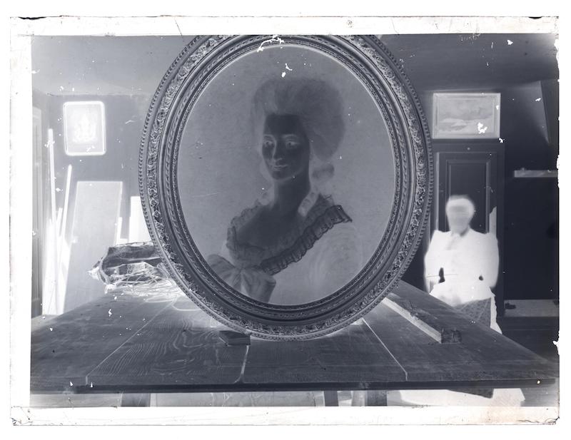 - Photographie d'un tableau ovale représentant un portrait de femme