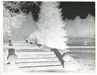 James Tissot et une fillette en haut d'une volée de marches du parc de Buillon