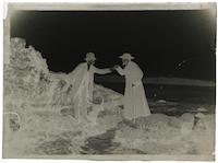 Homme et femme devant le château de Buillon, vu depuis la Loue