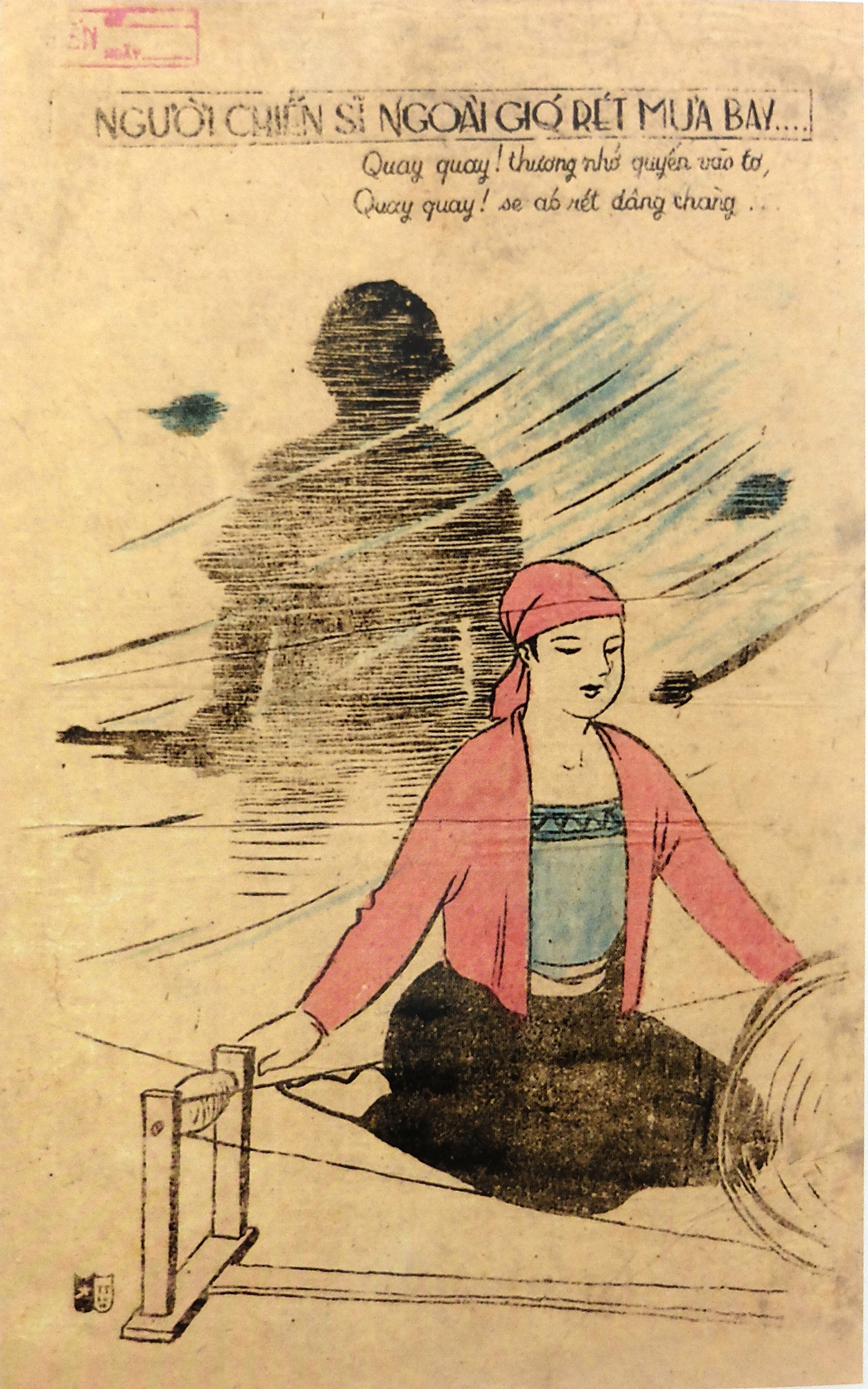 Người chiến sĩ ngoài giớ rét mưa bay… Quay quay ! Thương nhớ quyến vào tơ, Quay quay ! Se ab rét dâng chàng…