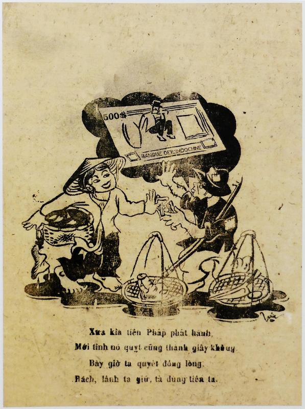Xưa kìa tiền Pháp phát hành, mới tinh nó quỵt cũng thanh giấy không - Bây giờ ta quyèt đồng lòng : rách, lánh ta giữ, ta dùng tiền ta