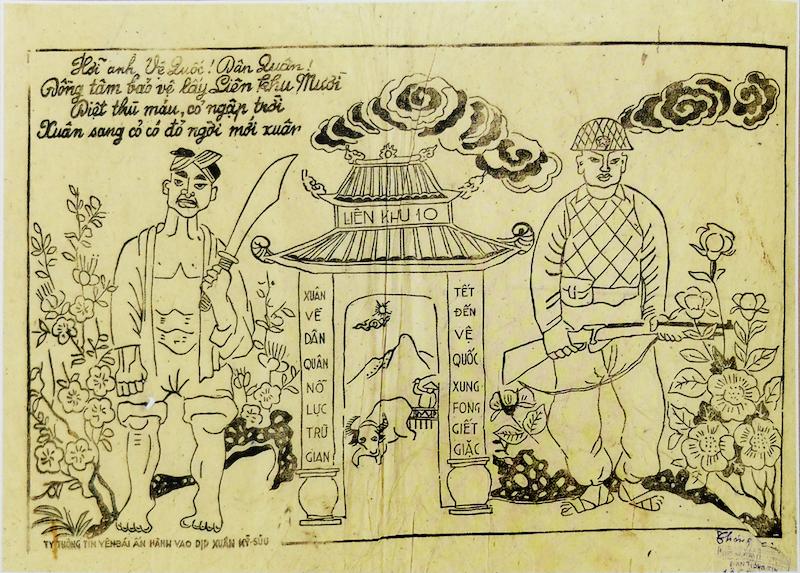 - Hỡi anh vệ Quốc ! Dận Quân ! Dồng tâm bảo vệ lấy Liên Khu Mười Diệt thù máu, cỏ ngập trời - Xuân sang cỏ có đỏ ngơi mới xuân