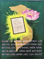 Élevant toujours plus haut le drapeau de l'indépendance nationale, soyons déterminés à combattre et vaincre les envahisseurs américains, à libérer le Sud, défendre le Nord, réunir le pays, afin de répondre aux souhaits du Président Ho chi Minh